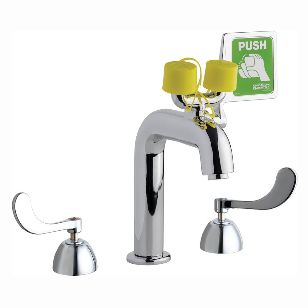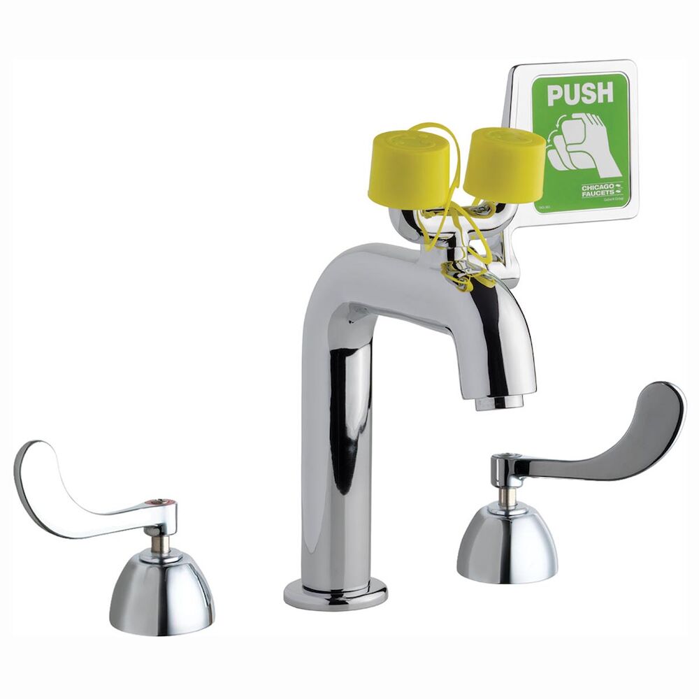 Chicago Faucet® 8452-ABCP Dual-handle Safety Eyewash Faucet Fitting, Softflo aerator 2.2 gpm, Chrome