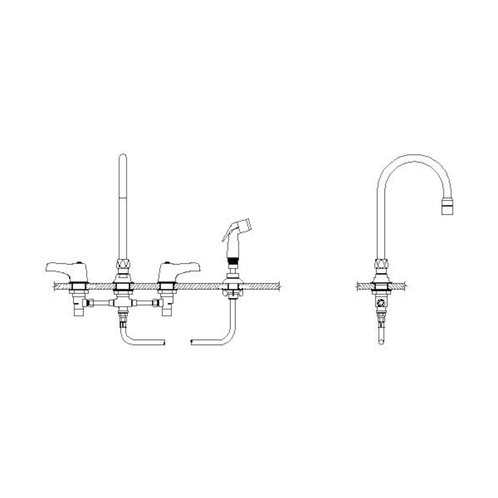 Commercial 27C1 / 27C2 Two Handle 8" Below Deck Mount Faucet with Hose and Spray, Chrome